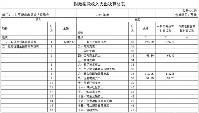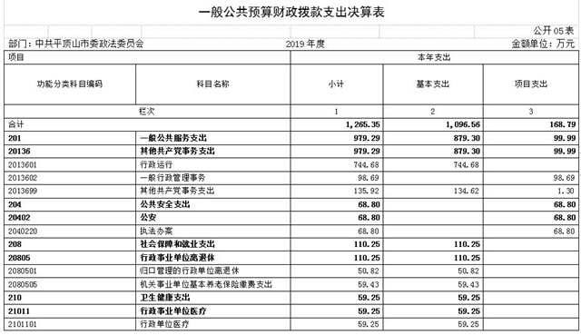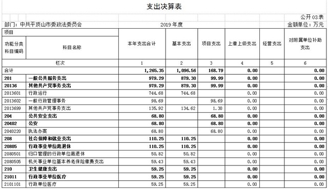 從決算單位構(gòu)成看,中共平頂山市委政法委員會決算包括本級決算,沒有二級單位。