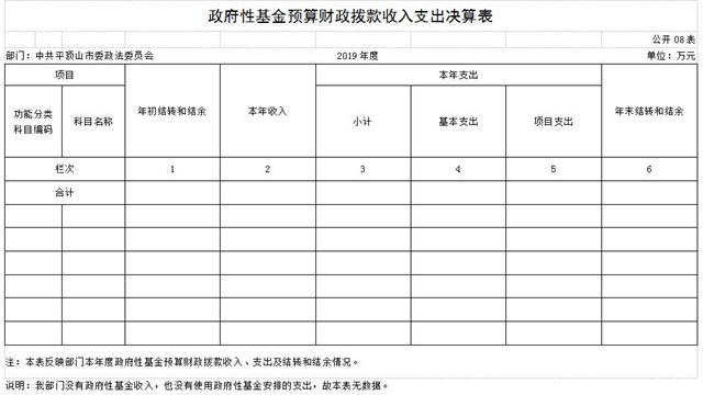 2019年度政府性基金預(yù)算財政撥款支出年初預(yù)算為0.00萬元,支出決算為0.00萬元,完成年初預(yù)算的0%。我單位2019年度沒有政府性基金收入,也沒有使用政府基金安排的支出。