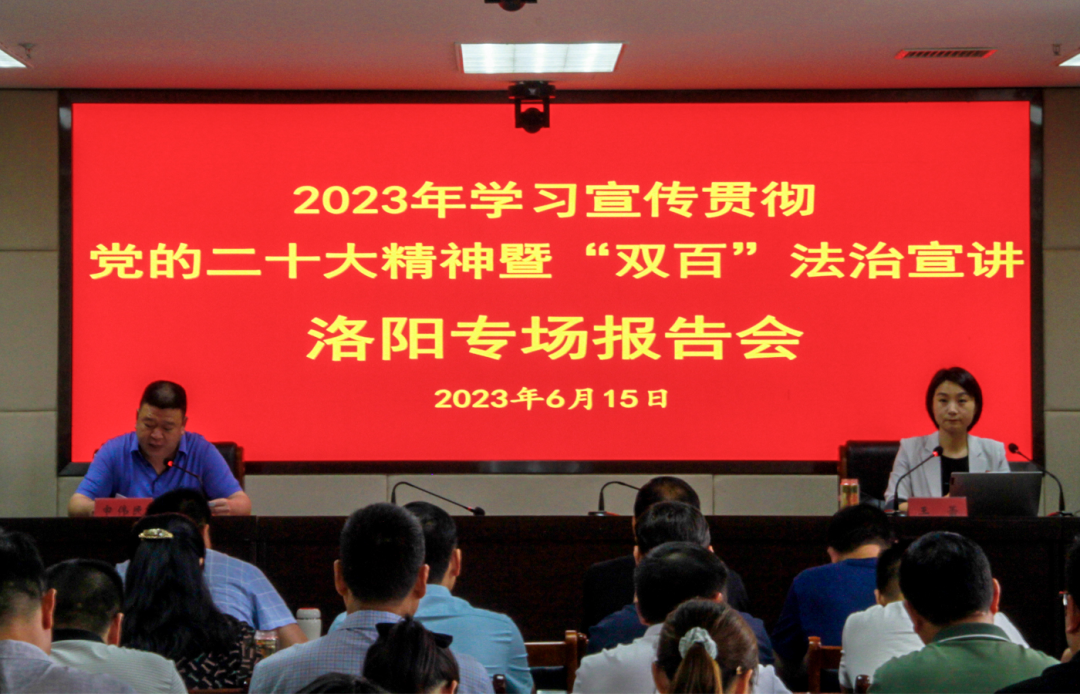 6月15日,洛陽市委政法委、市法學(xué)會組織舉行學(xué)習宣傳貫徹黨的二十大精神暨“百名法學(xué)家百場報告會”法治宣講洛陽專場活動,邀請河南省青年理論宣講專家、黨的二十大精神市級宣講團成員、市委黨校法學(xué)副教授王蕾以“堅持全面依法治國,推進法治中國建設(shè)”為主題作輔導(dǎo)報告,市委政法委副書記、市法學(xué)會秘書長申偉民主持會議。